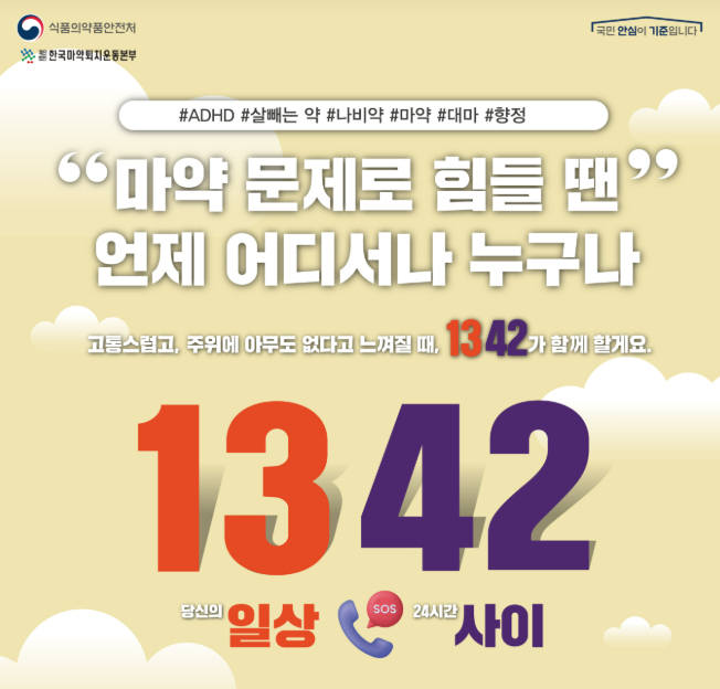 식품의약품안전처 24시간 마약류 상담센터 1342
