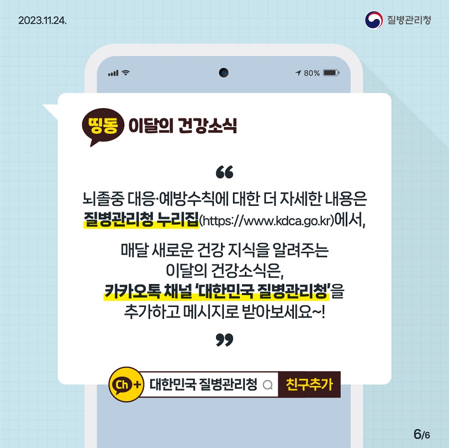 <뇌졸중에 대한 더 자세한 내용은 질병관리청 누리집 (https://www.kdca.go.kr) 에서,
